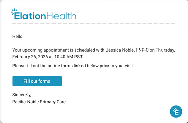At Pacific Noble Primary Care, we offer secure HIPAA-compliant virtual visits for established patients through our Elation Integrated Video, powered by Zoom. To help ensure a quality appointment experience, please review the steps below to easily join your next Telehealth visit. ​